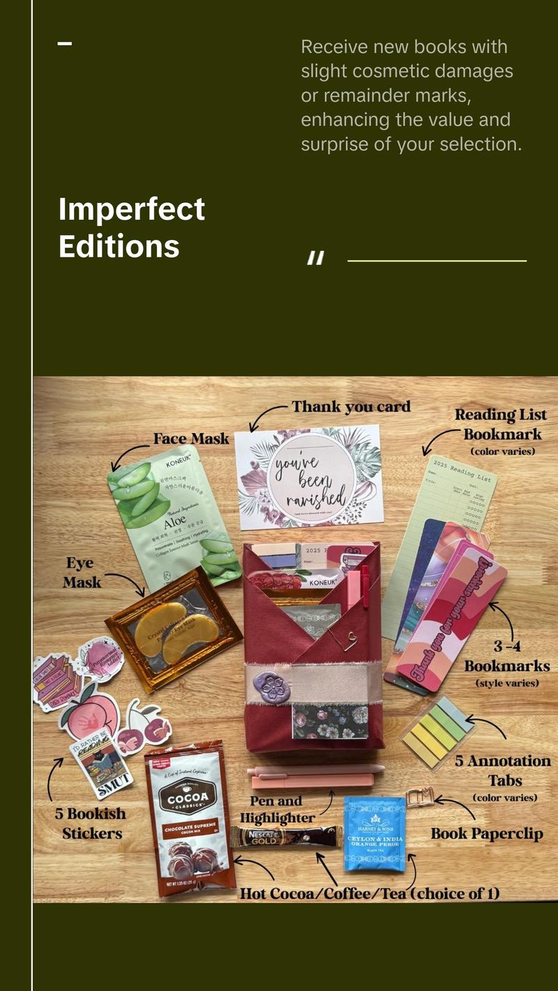 本にまつわるグッズが入った Imperfect Spicy BDWAB に含まれるもの: